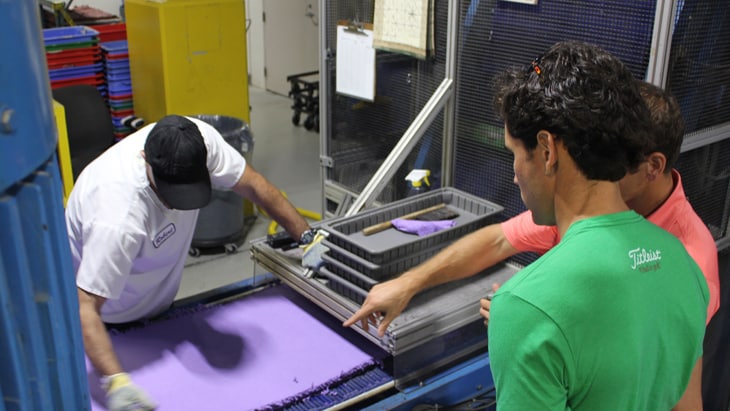 Check out the slideshow below for a look at Rafa’s day behind-the-scenes at Titleist Golf Ball R&D and Ball Plant 3.