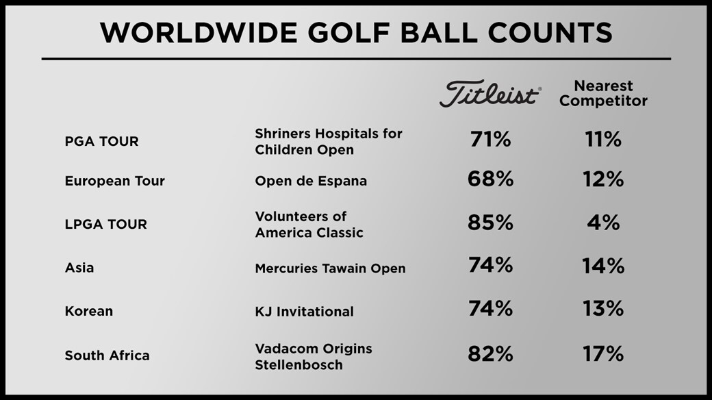 For the fourth consecutive event to start the new PGA TOUR season, more than 70 percent of all players teed up a Pro V1/Pro V1x. This week, 102 players played a Titleist, that’s more than six times the nearest competitor (16).