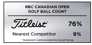 At this week's RBC Canadian Open, Titleist is once again the overwhelming golf ball of choice with 76% of the field (118 players in the field of 155) trusting a Pro V1 or Pro V1x golf ball, more than eight times the nearest competitor with 9% (14 players) and more than all competitors combined.