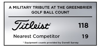 This week, at A Military Tribute at The Greenbrier, Titleist is the overwhelming golf ball of choice with 118 players in the field of 156 trusting a Pro V1 or Pro V1x golf ball, more than six times the nearest competitor with 19 and more than all competitors combined.