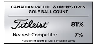 Titleist was the most played golf ball at the Canadian Pacific Women's Open with 81% of the field (125 players in the field of 154) trusting a Pro V1 or Pro V1x, more than 12 times the nearest competitor with 7% (10 players).