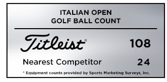 Titleist was the most played golf ball at the Italian Open with 108 players trusting a Pro V1 or Pro V1x, more than four times the nearest competitor with 24.