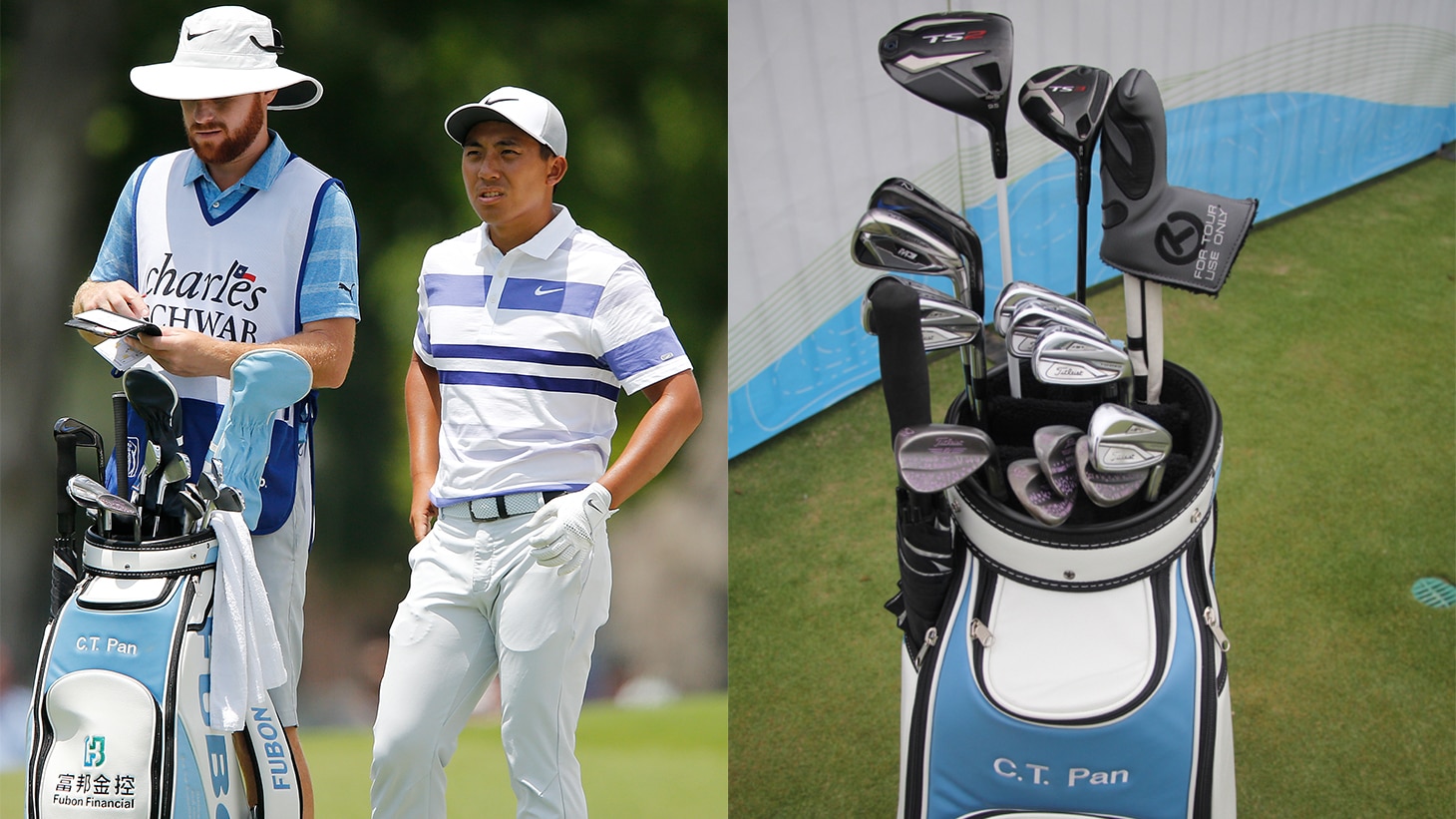 C.T. Pan: Pro V1x golf ball, TS2 driver (9.5°), TS3 fairway metal (16.5°), T-MB (4) and 718 AP2 (5-9) irons, Vokey Design SM7 pitching (46.10 F Grind), gap (52.08 F Grind), sand (58.10 K Grind) and lob (62.08 M Grind) wedges, Scotty Cameron Custom 009 putter.