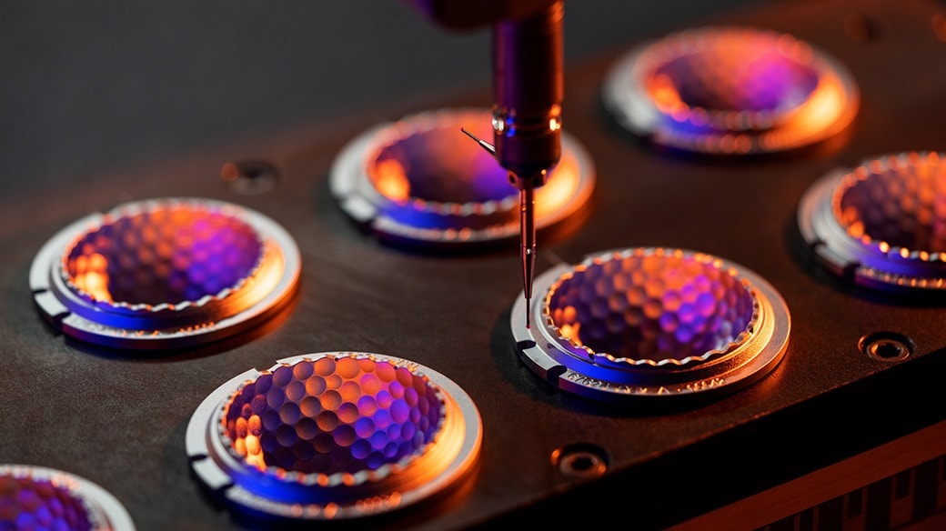 "When we make the tooling to do this," Mike said, "we're only changing the dimple depths by about 2/10,000 of an inch for each iteration. To put that into context, that's about the size of a red blood cell. Our ability to precisely control the depth of the dimples, and detect these differences, allows us to optimize trajectory and achieve industry-leading distance."