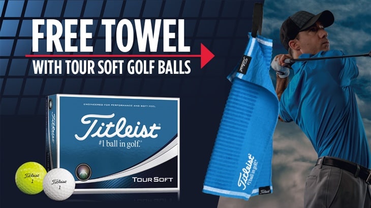 From now and until stocks last at participating Titleist stockists, buy a dozen Tour Soft golf balls and receive a FREE Titleist Tour Soft towel.