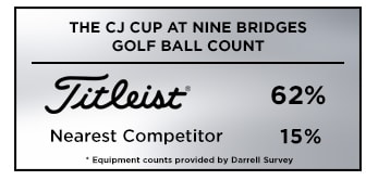 Of the 78 players in the limited field at this week's CJ Cup, 62% are trusting a Titleist Pro V1 or Pro V1x golf ball for their success, more than four times the nearest competitor with 19% and more than all competitors combined.*