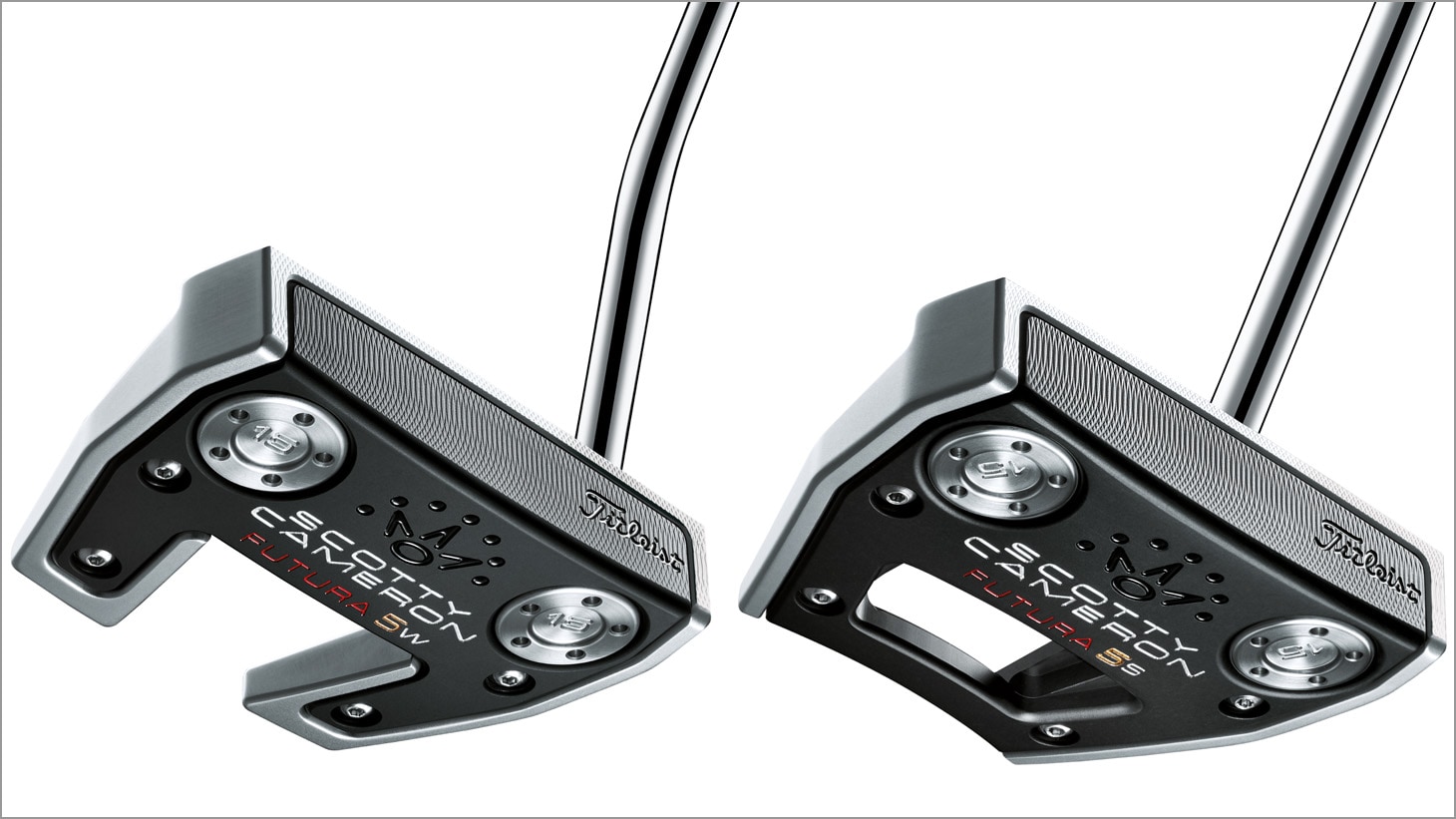 Futura 5W and Futura 5S improve upon the popular aspects of the prior generation Futura X5 and Futura X7M models. The Futura 5W (“W” for “wing”) is shaped similarly to the Futura X5, but now has full wrap-around multi-material face-sole technology and enhanced dual purpose alignment features that frame the ball and aligns the sweet spot with white flange lines placed parallel to each wing. Futura 5S (“S” for “straight shaft”) is a more compact and stylistically updated version of Futura X7M with a straight shaft setup inspired by tour feedback, and dual-purpose alignment.