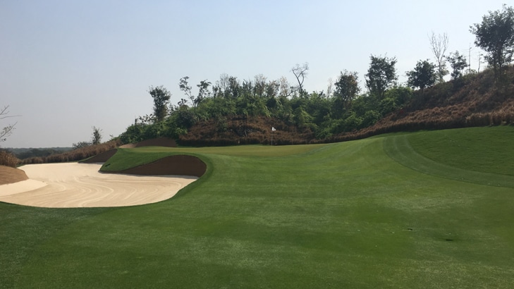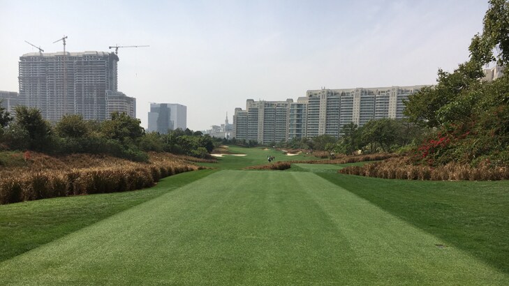 DLF Golf & Country Club is renowned for it's dramatic landscape including two large lakes, big land forms, undulating greens and unique bunkering. The opening holes are dominated by water and include an island green on the fifth, hence the name 'Lake Nine'. Whereas the back nine is built around a quarry and a large lake with massive rock formations, so named the 'Quarry Nine'.