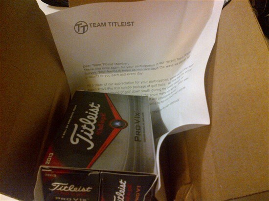 Thanks Mitch and TT, Just received the Pro V's six pack from the survey. Not just great equipment and accessories from Titleist but the Team that stands with them. Just curious, would TT like me to do a survey on BMW's.. :} Pat