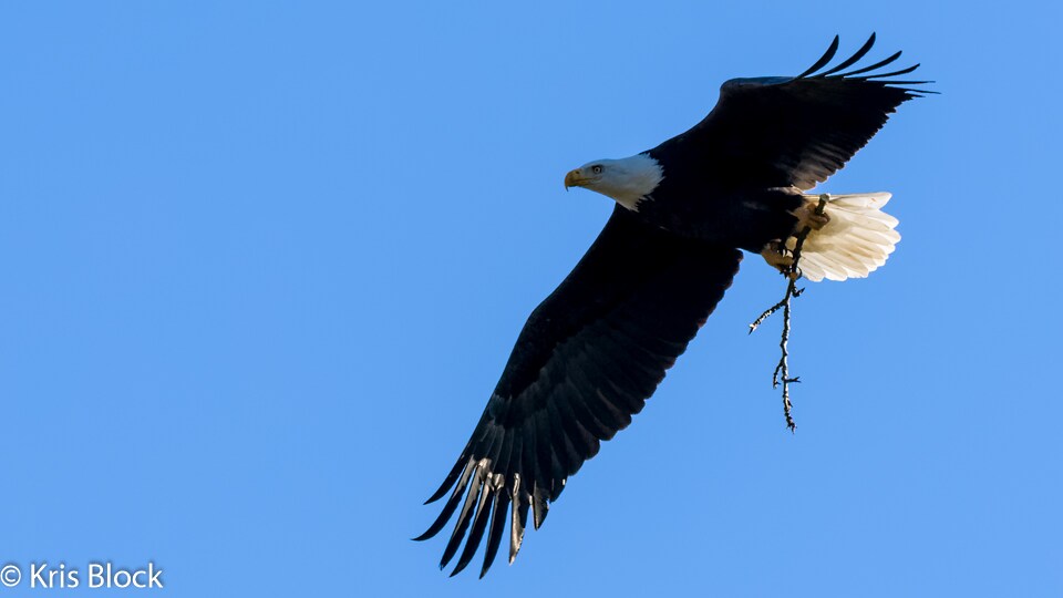 Eagle rebuilding his nest after a windstorm last month, hole number 8, at Royalwood.