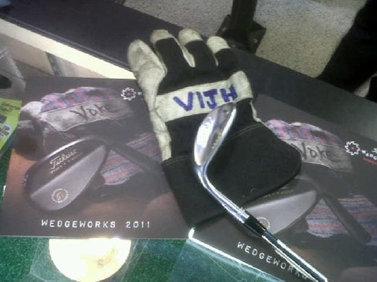Marcus Vijh - Shop Guru at Golf Town St. Catharines, was pleasantly surprised to see that he unknowingly tags his shop gloves just like Titleist Wedge Master Craftsmen, Bob Vokey. When Mr. Vijh's local Titleist Representative came by to drop off the 2011 Vokey WedgeWorks brochures, he was forced to complete a double take before he could convinence himself that we hadn't borrowed his gloves for the cover photoshoot. Maybe next year Marcus!