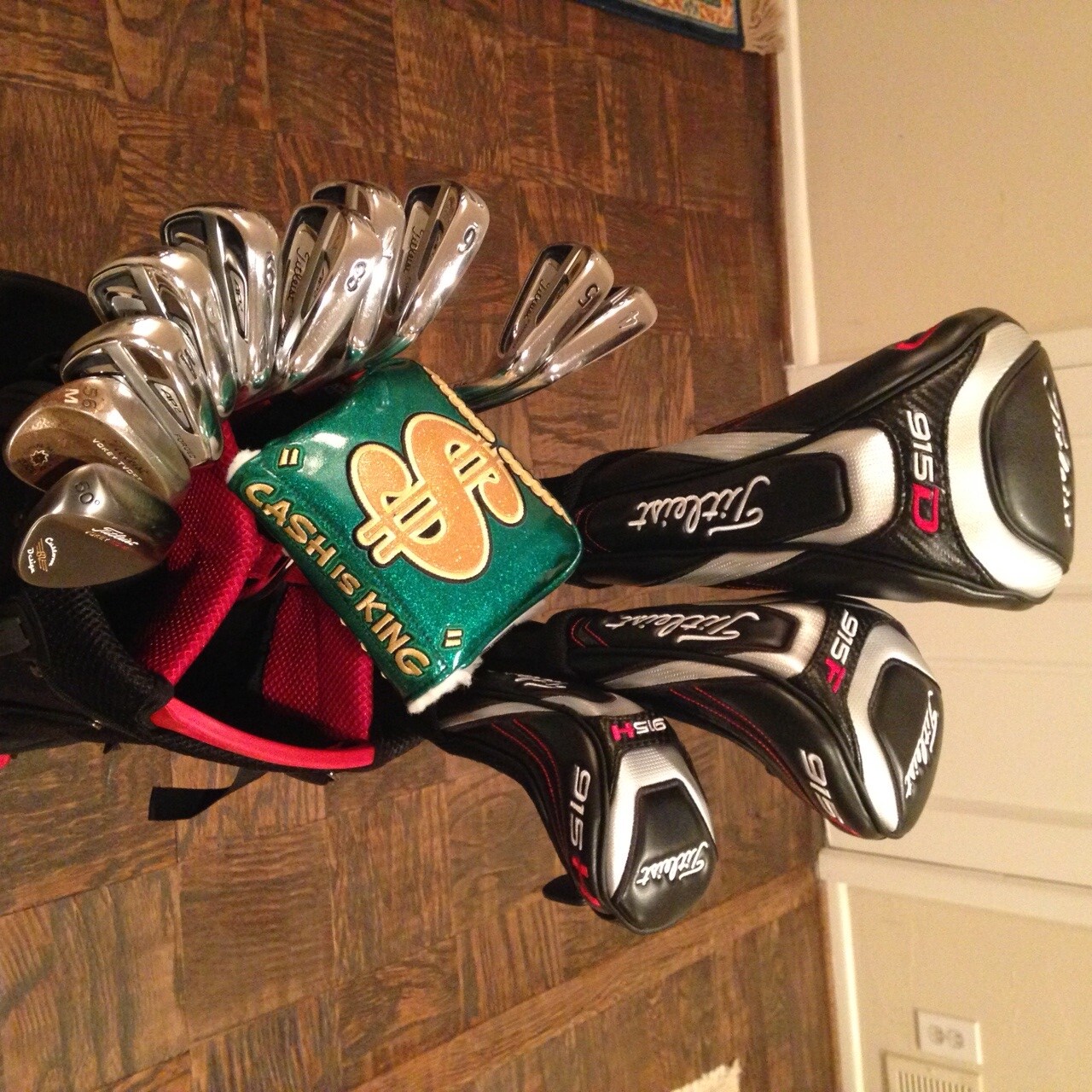 Top of Top Cuff: 915D3 9.5* driver, 915Fd 15* fairway metal, 915Hd 20.5* hybrid, Scotty Cameron Squareback Select