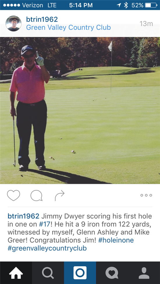 Congratulations on your hole in one, Jim! Keep making those great swings!!