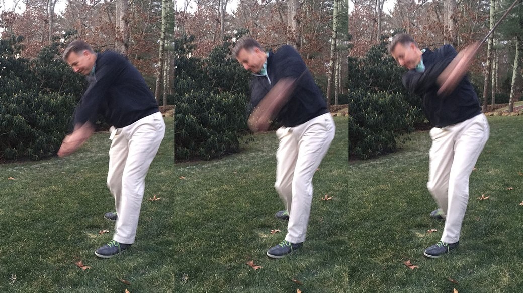 Now repeat the same sequence with a golf club, listening for the sound of the club head past impact and trying to make your loudest whoosh just after the ball. Build up speed gradually from swing to swing, replicating the feel you had with the light shaft. If you have a hitting net or can get outside, a great bonus step is to hit a golf shot, focusing on reproducing the same feel you created in the practice swings.
