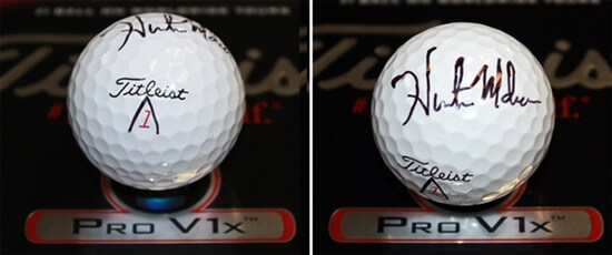 Today's grand prize? A new Titleist Pro V1x golf ball signed marked and signed by Hunter recently at our "Titleist Tips from the Tour" TV shoot at Doral – and a Team Titleist Limited Edition golf towel. Both are pictured below. (Hunter recently explained the significance of his marking to Team Titleist. Click here to watch.)
