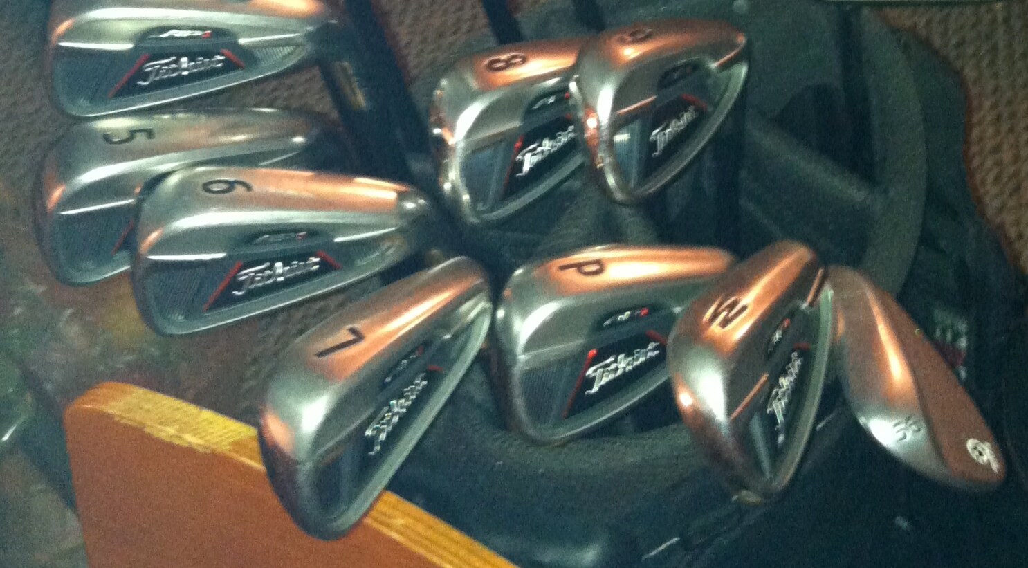 I am getting ready to leave on a golf trip in the morning and had my current (712/913) clubs at home and thought I would take a picture with their older siblings (710/910). Ended up getting busted by my wife with the quote "Really? You love your clubs enough to carry pictures of them around with you?"