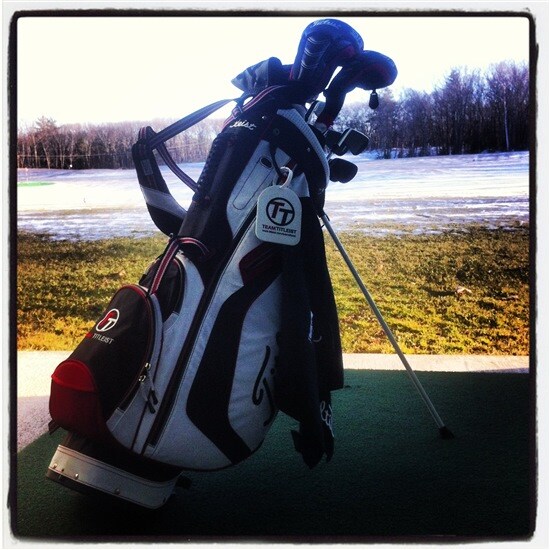 A quick pic of my gear during a recent range session... Yes, snow on the ground. Yes, it was below freezing. Full disclosure, I was in a heated bay. I'll grab some more pics to pull together a nice tour this weekend. I have that exact same bag Mike, I love it and want to get Team Titleist embroidered on to it like yours.