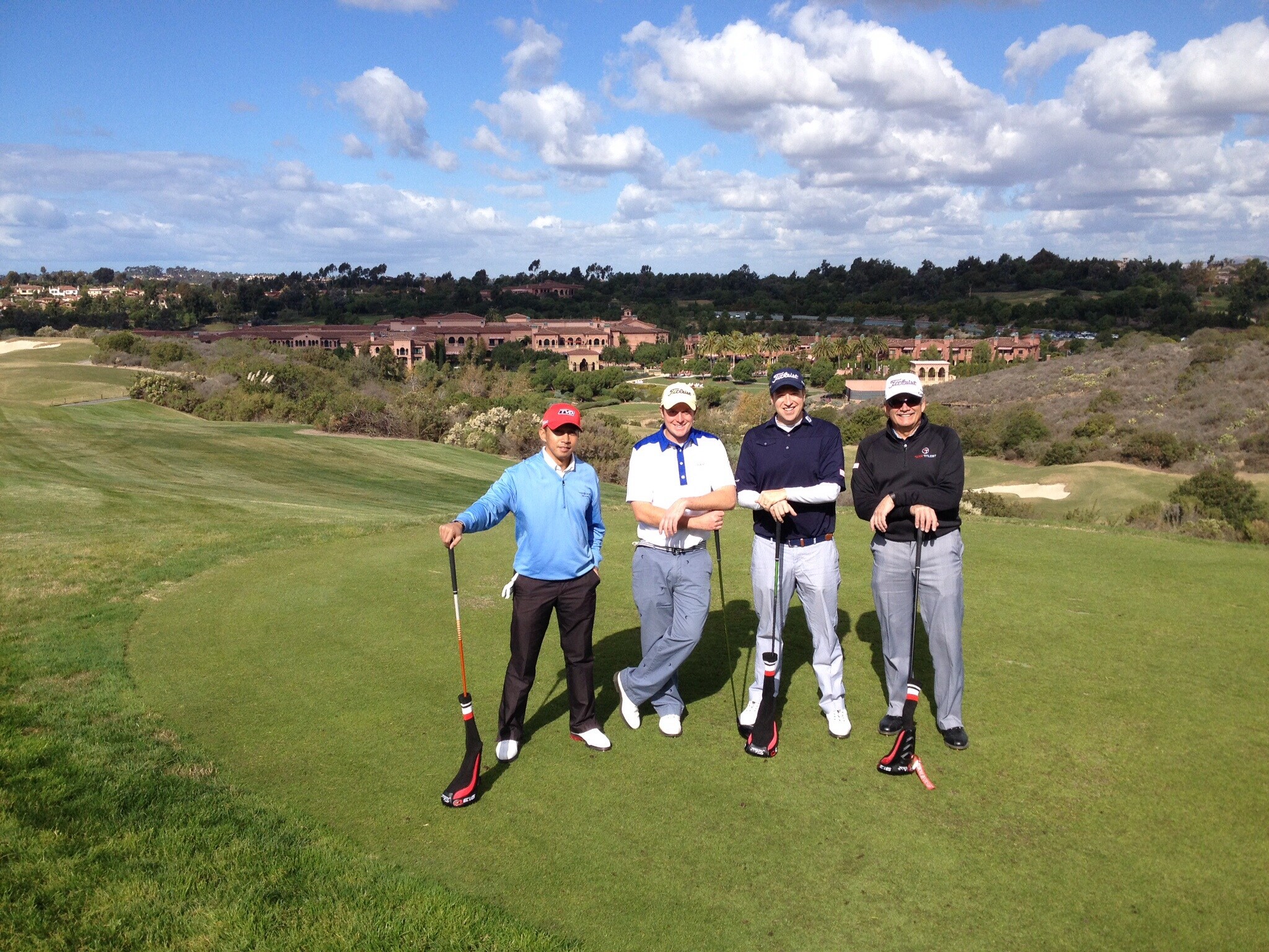 Our group for the San Diego TT event. Brent W., Vern, Bryce, and myself. For the TT fellas that did not see Brent shivering the entire time he was at Del Mar, he got back to Hawaii and on Sunday proceeded to shoot 30/38 - For a smooth 78 at Kapolei. Guess we know what weather he likes playing golf in.