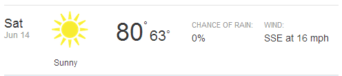 Might be a little windy, but no rain chance!!! As of right now anyway.