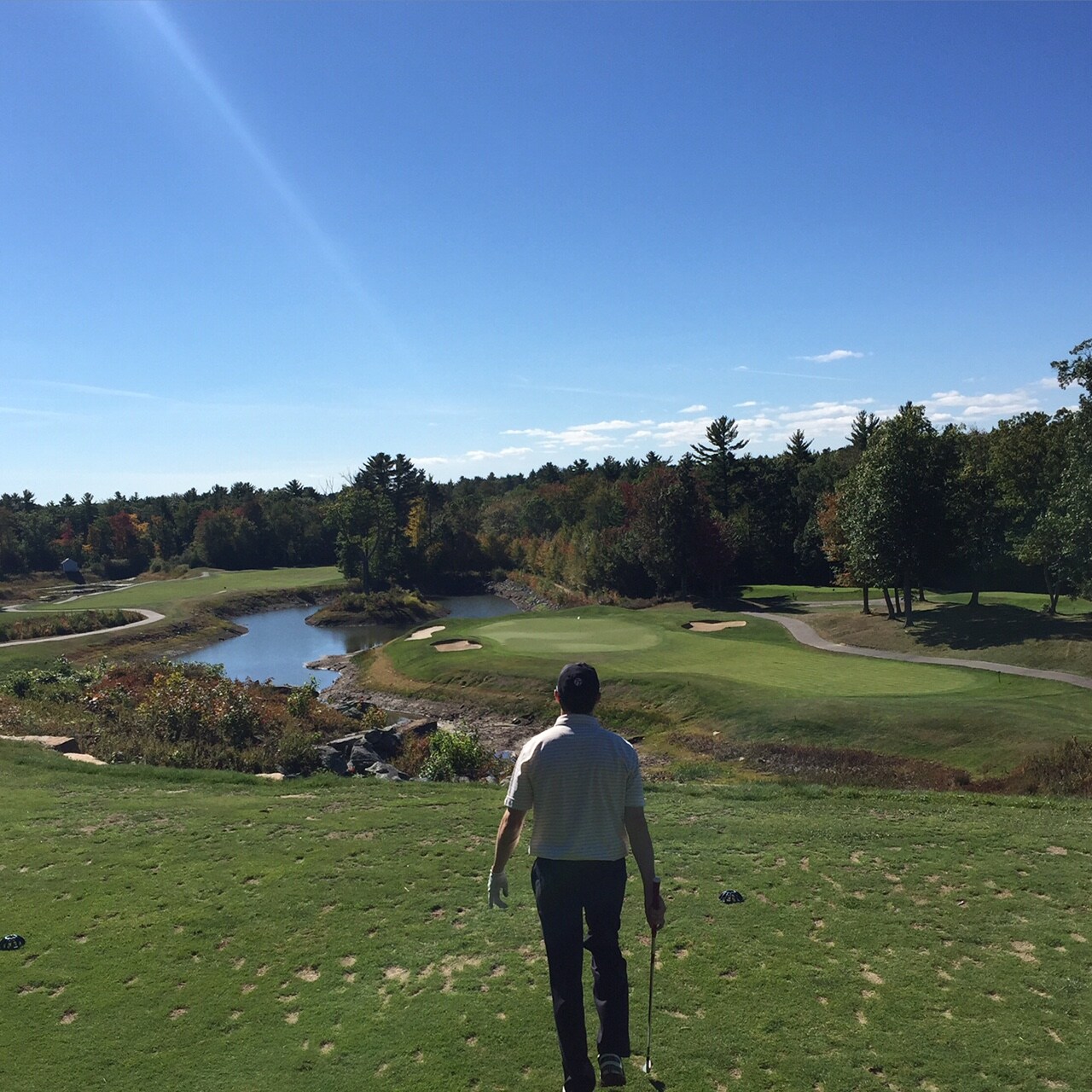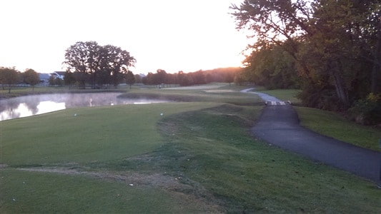 Nothing spectacular, just the first guy off this morning at 7:20 on one of the courses close to me (The Falls at Turtle Creek). Waiting on maintenance crew to finish raking the bunker and blow leaves off the fairway. Temp was cool (47), but it's great being first person out because I can usually finish 18 in about 2.5 hrs.
