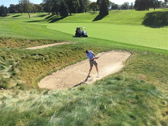 The club recently refurbished all of the bunkers on the course. They looked pretty daunting, but great, if you ask me! Above is right of the fairway on No. 10 and below are right side fairway bunkers on No. 18.