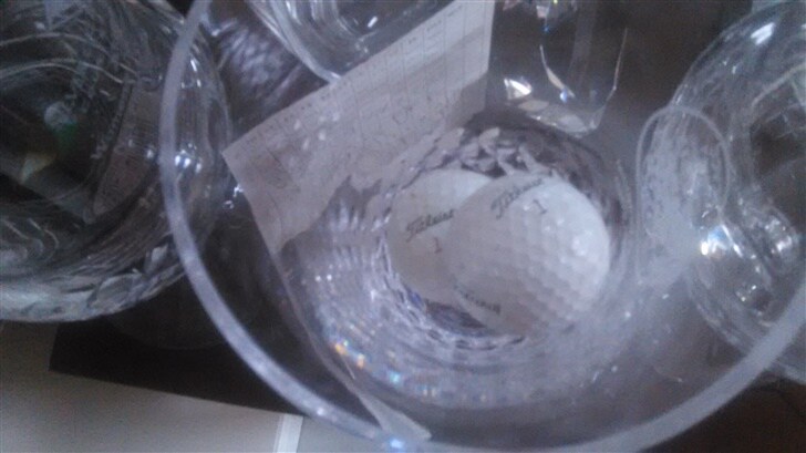 This spring, I was in Palm Desert playing golf with a dear friend's husband and two other gentlemen and I had a miraculous hole-in-one that they all witnessed.  I cried again, but this time it was tears of joy and utter disbelief.  I thought it would never happen again and it was like a dream. That was also a Titleist Pro V1, #1 so I should probably re-think my numbering my golf balls #8.  I keep those two Titleist Pro V1 #1's in one of my trophy vases.  People can say that my first didn't count, but it did to me.